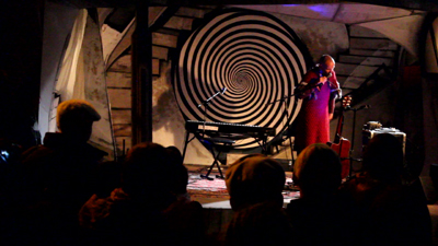 | Von Leipzigs schönster Open-Air-Bühne, gelegen auf dem Balkon der Kosmoshaus-Sauna eingangs der Gottschedstraße, genießt der Betrachter eine wunderbare Aussicht auf die Innenstadt. Nach dem Beginn des Konzerts von Pierre Bosolum sind Optik und Gehör jedoch komplett vom künstlerischen Geschehen in Anspruch genommen.